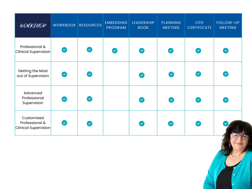 This program is only available to Supervisors within your workplace who have completed Michelle’s foundational 2-day Professional Supervision program.